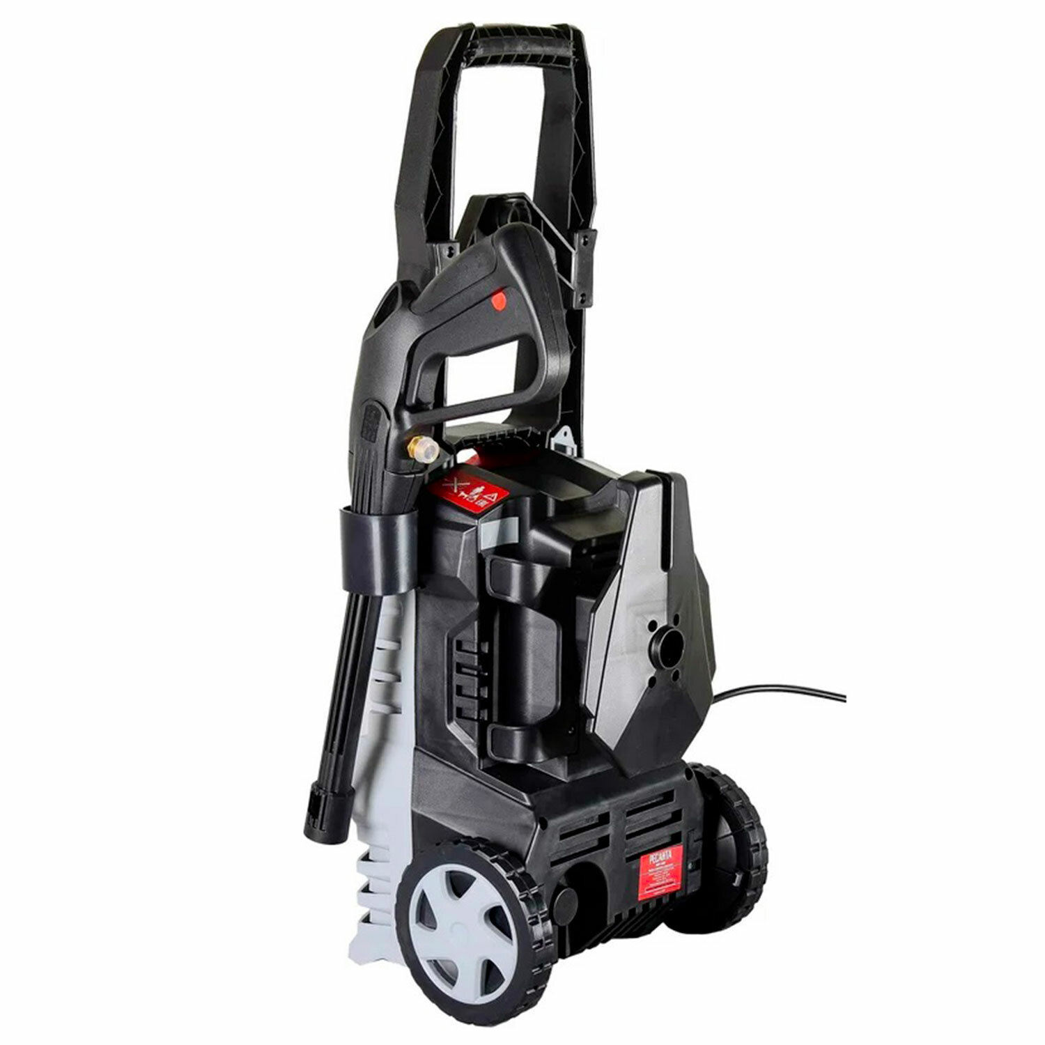 Минимойка имеет колеса, что в сочетании с небольшим весом и компактными габаритами делает её очень мобильной. При массе почти 7 кг аппарат устойчив и транспортабелен. Его легко собрать и подключить. Все элементы корпуса и комплектующие изготовлены из прочных материалов.