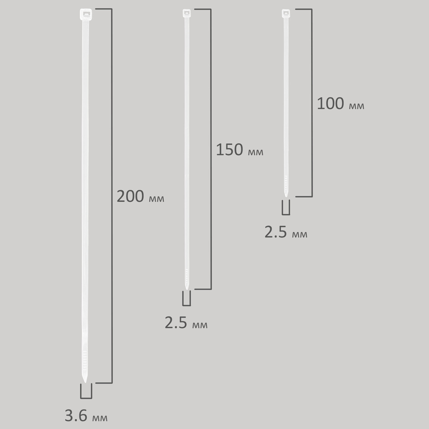 - Стяжки (хомуты) нейлоновые сверхпрочные НАБОР 150 шт. (2,5х100/150 мм; 3,6х200 мм), белые, SONNEN, 607927