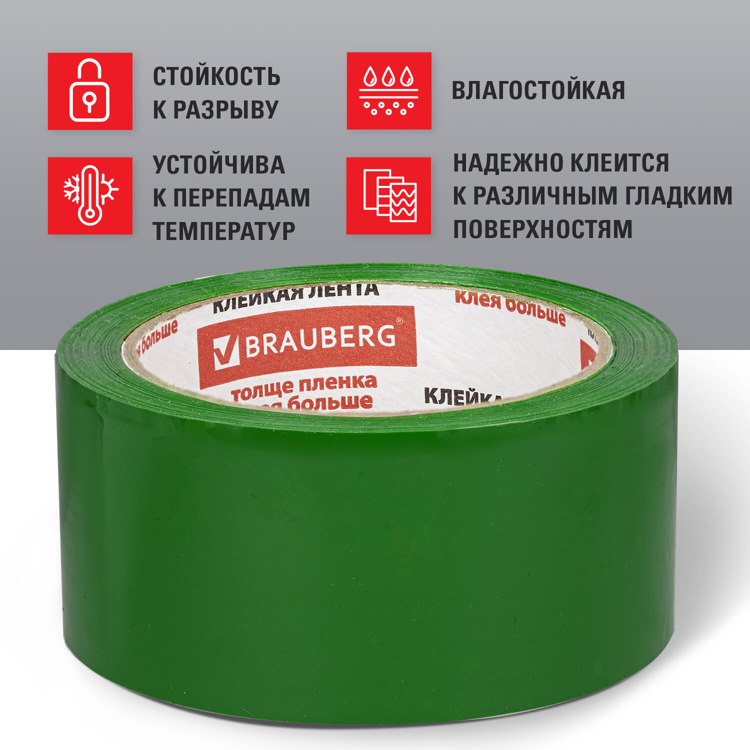 - Клейкая лента упаковочная, 48 мм х 66 м, ЗЕЛЕНАЯ, толщина 45 микрон, BRAUBERG, 440073