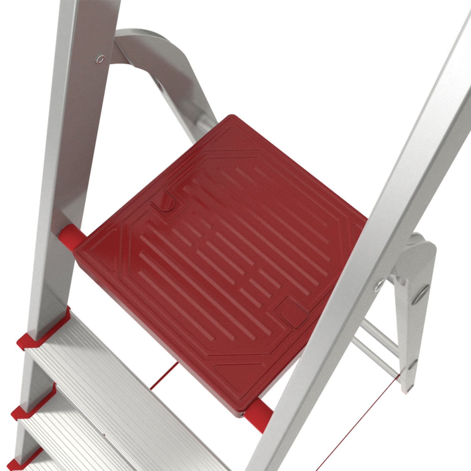 Рифлёная поверхность ступеней способствует безопасному подъёму и спуску, а прочное крепление ступеней к боковинам 6 заклёпками придаёт конструкции высокую устойчивость. Опорные наконечники из прочного пластика обеспечивают устойчивое положение. Лестница располагает дугой безопасности 600 мм и прочными страховочными ремнями. Стремянка алюминиевая 7 стандартных ступеней 9 см, площадка 1,5 м, нагрузка 225 кг, вес 7 кг, НОВАЯ ВЫСОТА, 3110107