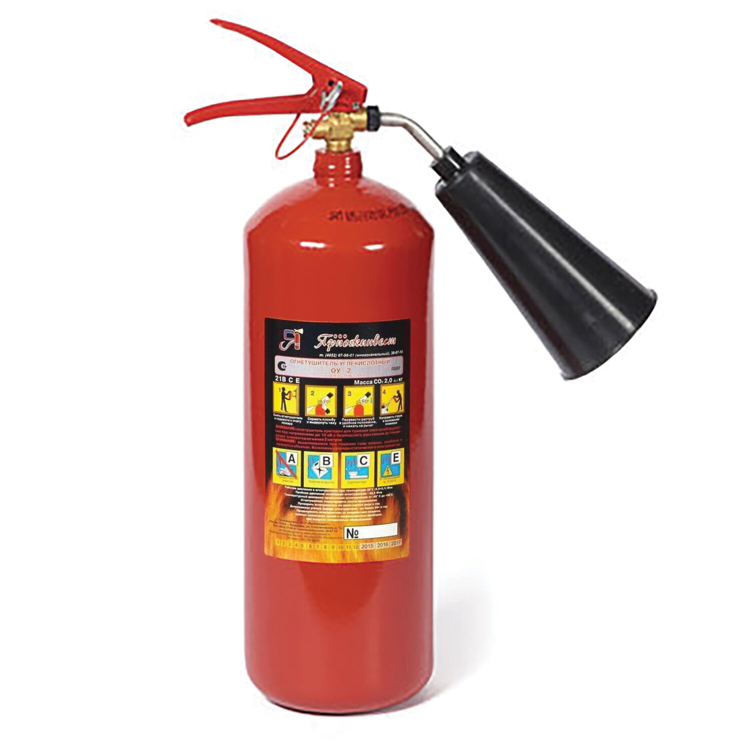 Производить переосвидетельствование баллона через 10 лет. Огнетушитель углекислотный ОУ-2, ВСЕ, закачной, в индивидуальном коробе, ЯРПОЖ, 41