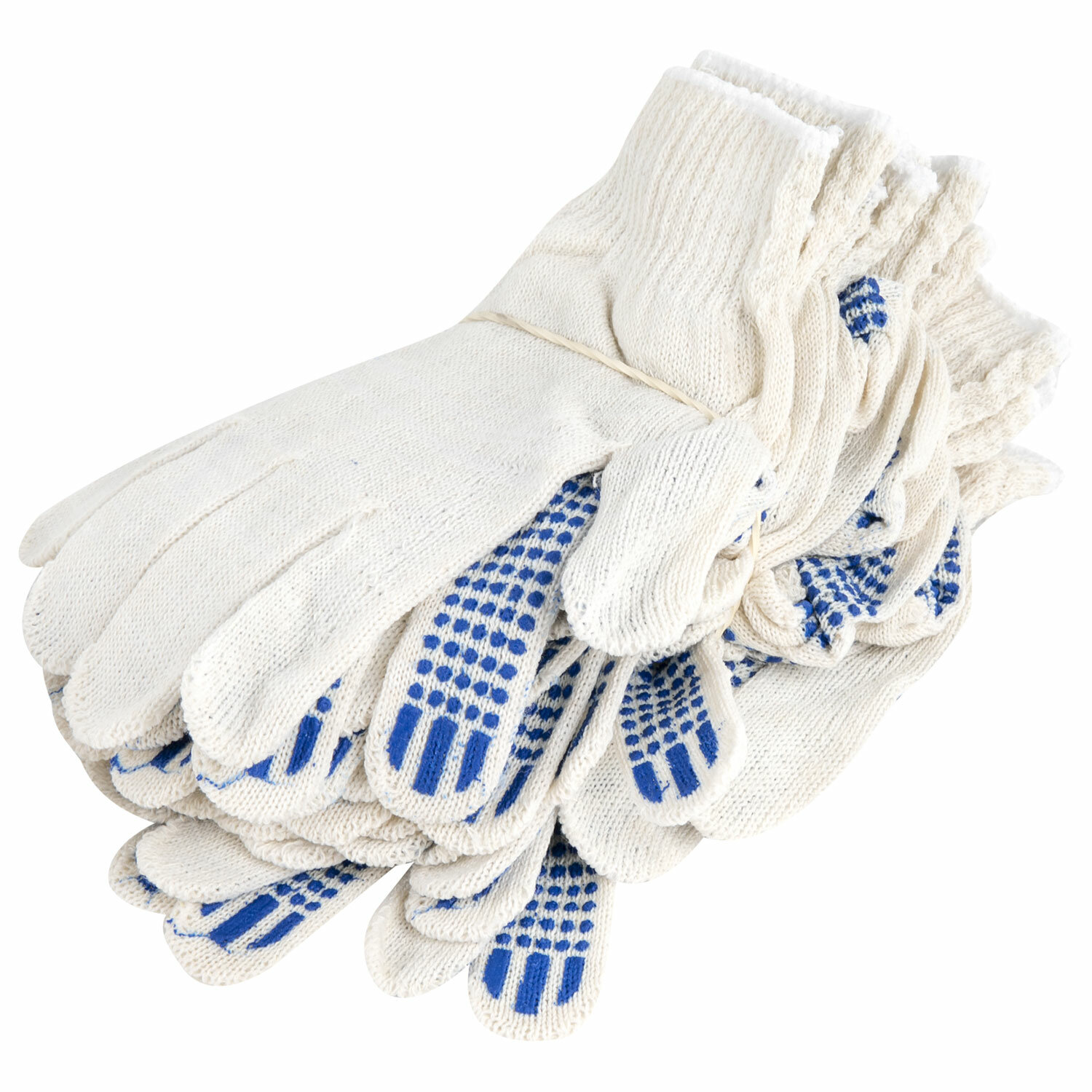 - Перчатки хлопчатобумажные эконом, КОМПЛЕКТ 100 пар, 10 класс, 26-28 г, 83 текс, С ПВХ, LAIMA ЭКОНОМ, БЕЛЫЕ, 608680
