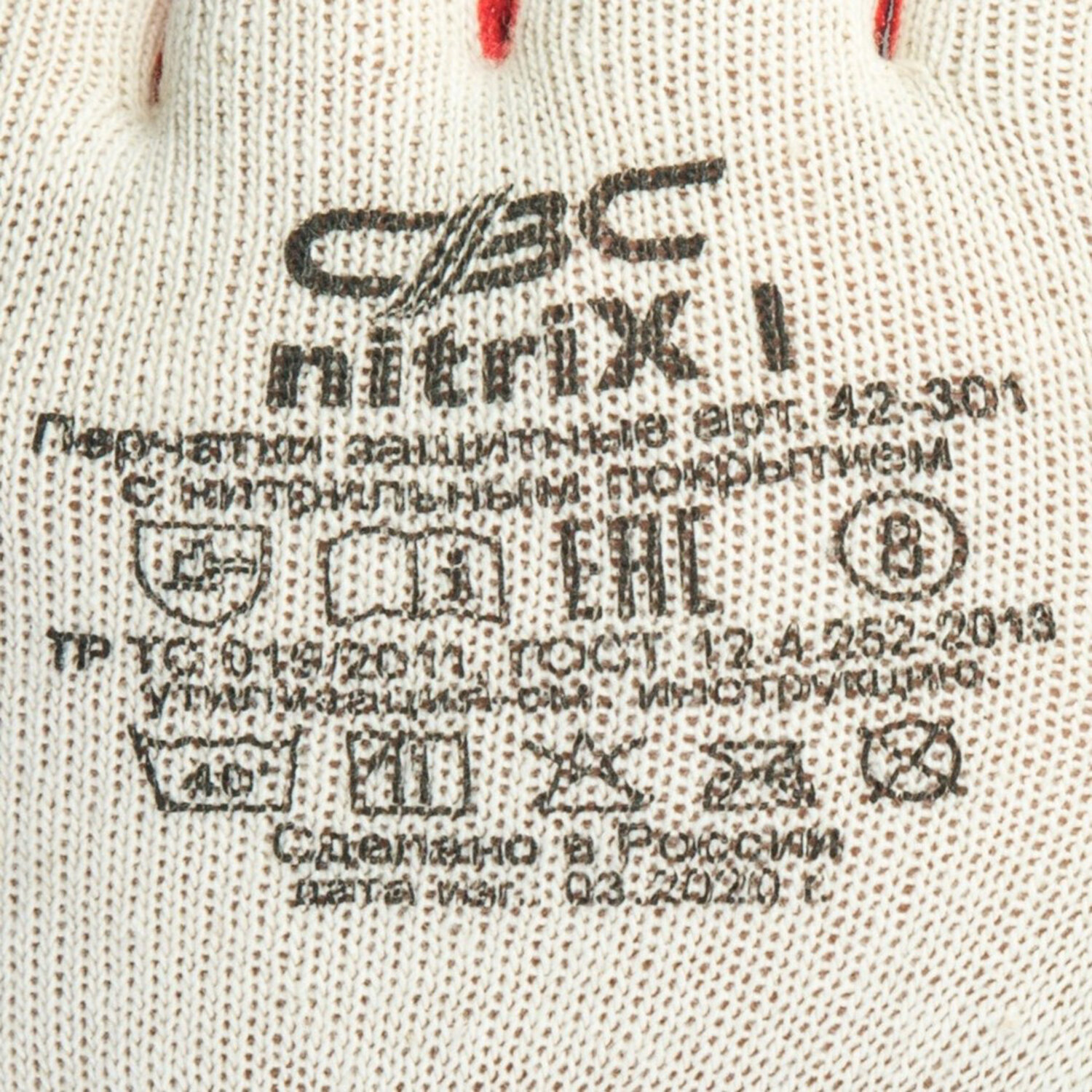 Перчатки х/б НИТРИКС маслобензостойкие 1пара, 13 класс, 34-36г размер 8, покрытие - облив вспененный НИТРИЛ, повышенная износостойкость, СВС, 42-301 бел/крас