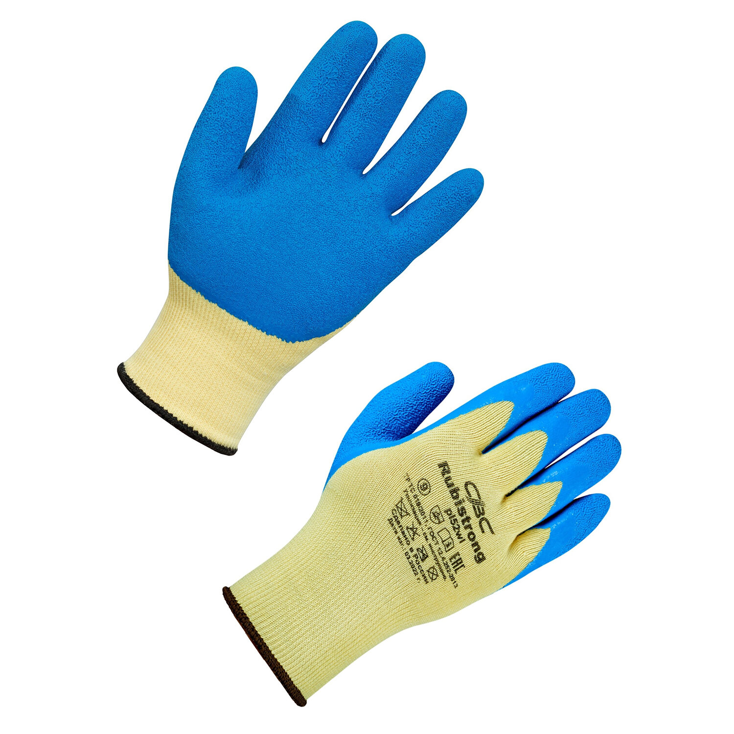 - Перчатки полиэфирные РУБИСТРОНГ супер прочные, 1 пара, 13 класс, 85-90 г, размер 9, покрытие - облив ЛАТЕКСНОЕ, высокоизносостойкие, СВС, pl52wl беж/син
