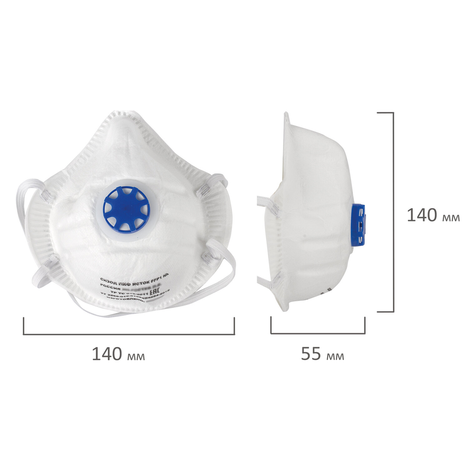 Респиратор противоаэрозольный, базовый класс защиты FFP1, с клапаном, формованный, ИСТОК, 892507