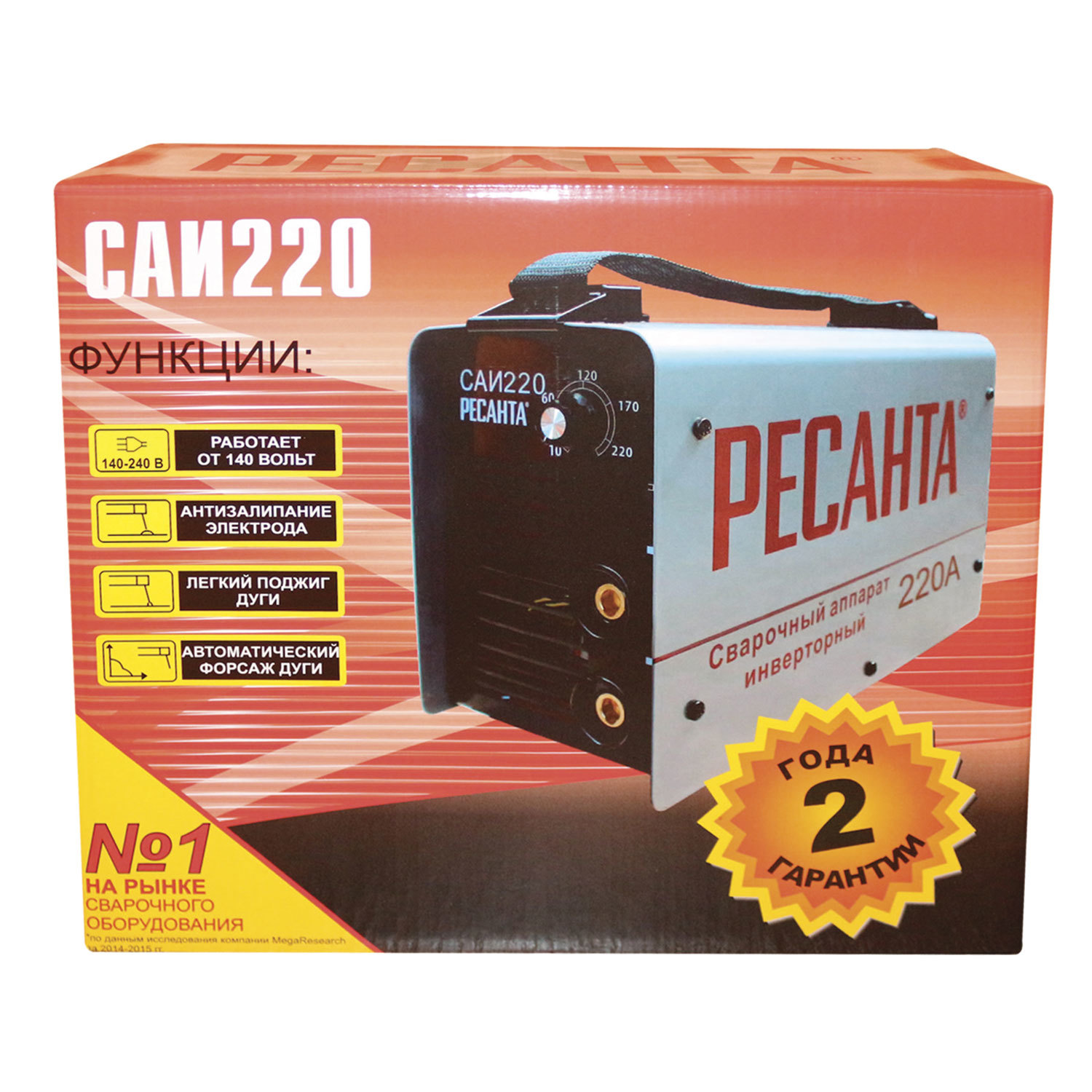 - Сварочный аппарат инверторный, сварочный ток до 220 А, диаметр электрода до 5 мм, РЕСАНТА САИ 220, 65/3