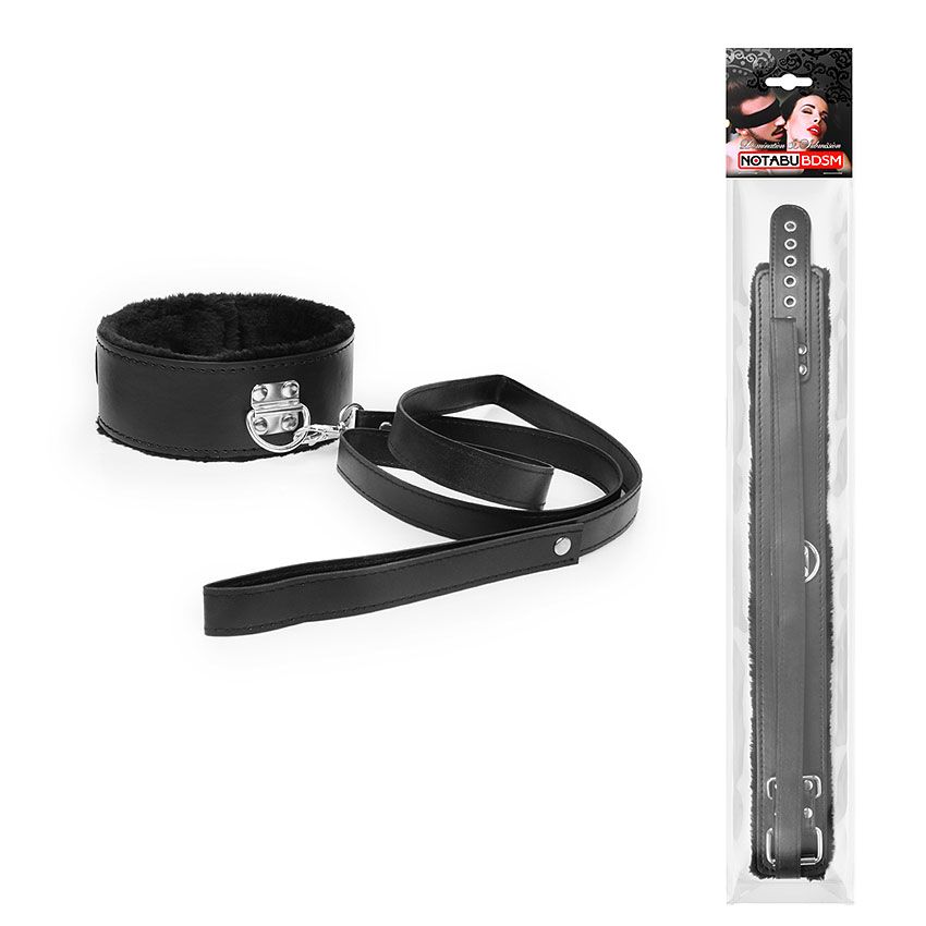 Великолепный БДСМ-аксессуар для любителей нестандартных эротических забав. В комплект входит ошейник с возможностью регулировки размера с помощью ремешков и поводок с ручкой-петлёй, который при желании можно отстёгивать. Внутренняя поверхность ошейника имеет меховую накладку, препятствующую натиранию кожи. БДСМ-аксессуар прост в применении, не требуют специального ухода. Черный ошейник на поводке с ручкой-петлей