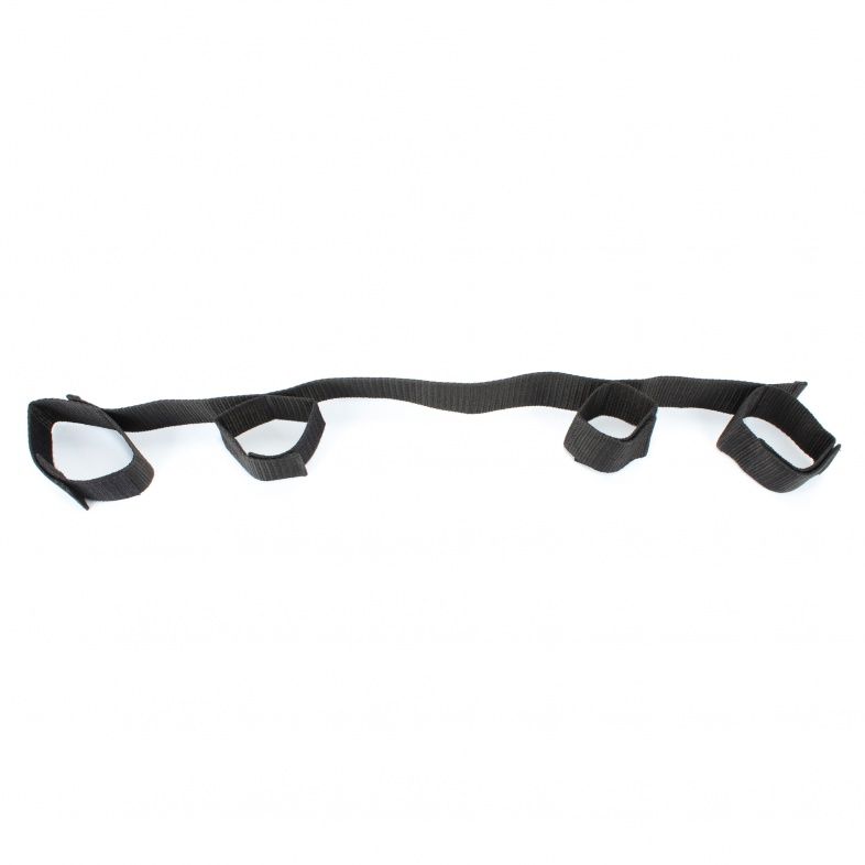 Фиксатор черного цвета, изготовленный из плотной черной корсажной ленты. По всей длине расположены фиксаторы для рук/запястий (2 шт) и лодыжек (2 шт) Их размер легко регулируется при помощи застежек-липучек. Фиксаторы для рук подойдут на обхват от 15 до 20 см, а для ног - от 20 до 27 см. Ширина - 5 см. Длина ленты - 60 см Фиксатор запястий к лодыжкам