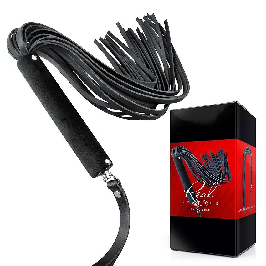 Великолепная плеть-флоггер для страстных БДСМ-игр. Интимный аксессуар позволит забыть обо всём и погрузиться в пленительное удовольствие. Длинные хвосты хорошо «ложатся» на кожу, сладко обжигая и обостряя все ощущения. Рукоятка обита мягким бархатистым материалом, не дающим флоггеру выскользнуть из руки даже при очень активных движениях. Петля на рукоятке позволяет носить плеть на запястье или хранить в подвешенном состоянии. Длина хвостов – 46,5 см. Черная кожаная плеть-флоггер - 84 см.
