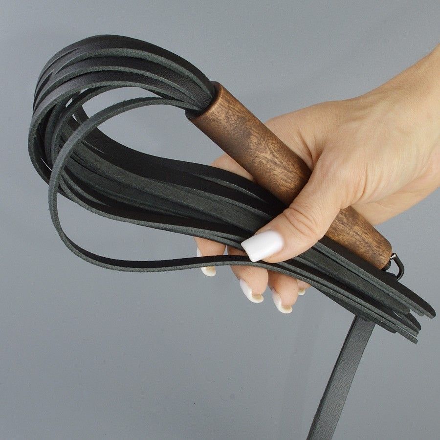 - Черная кожаная плеть с деревянной рукоятью - 44 см.