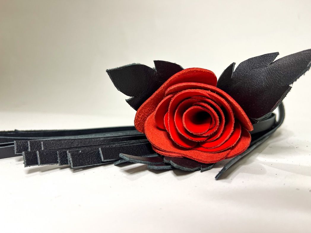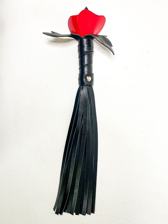 - Черная кожаная плеть с красной лаковой розой в рукояти - 40 см.