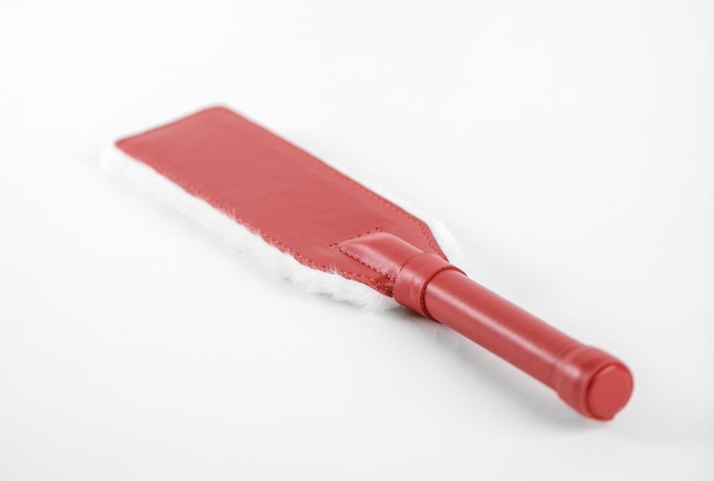 Двусторонняя шлепалка красивый и функциональный девайс. С одной стороны шлепалка выполнена из натуральной кожи красного цвета с другой стороны нежнейший мех. Ручка из натуральной кожи максимально комфортна в руке. Шлепалка при ударе звучит громко и эффектно. Ширина - 6,5 см. Красно-белая двустороння шлепалка из натуральной кожи и меха - 35 см.