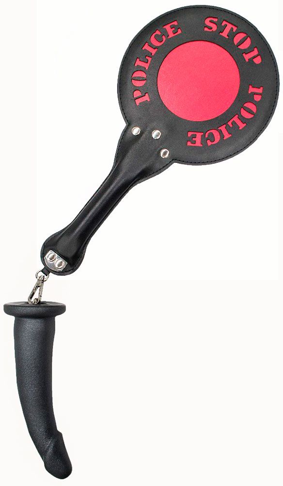 Изделие снабжено плагом. Плаг можно использовать пристегнутым, и тогда получается своеобразный «хвостик», или отстегнуть карабинчик и применить как обычный анальный или вагинальный плаг. Полиуретановая кожа многослойная, легко моется и стерилизуется. Плаги сделаны из эластичного полимера с встроенным коннектором. Шлепалка сделана в традиционном стиле и подходит под любые аксессуары БДСМ. Шлёпалка Полиция с анальным плагом