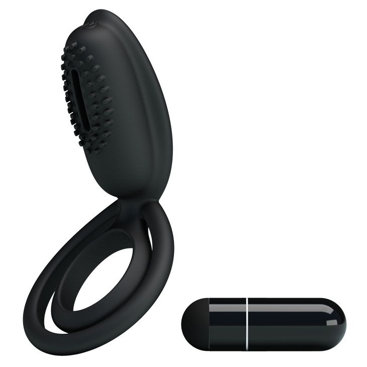Эрекционное кольцо с вибрацией – любимая игрушка множества пар, так как ощущения, которые она дарит, обеспечивают сильный оргазм и у мужчины, и у женщины. Данное колечко представляет собой симбиоз классического кольца, подхвата для мошонки и большой клиторальной щеточки с вибрацией. Вибропуля съемная. Батарейки в комплекте. Внутренний диаметр кольца - 2 см. Эрекционное кольцо с клиторальной щеточкой Esther