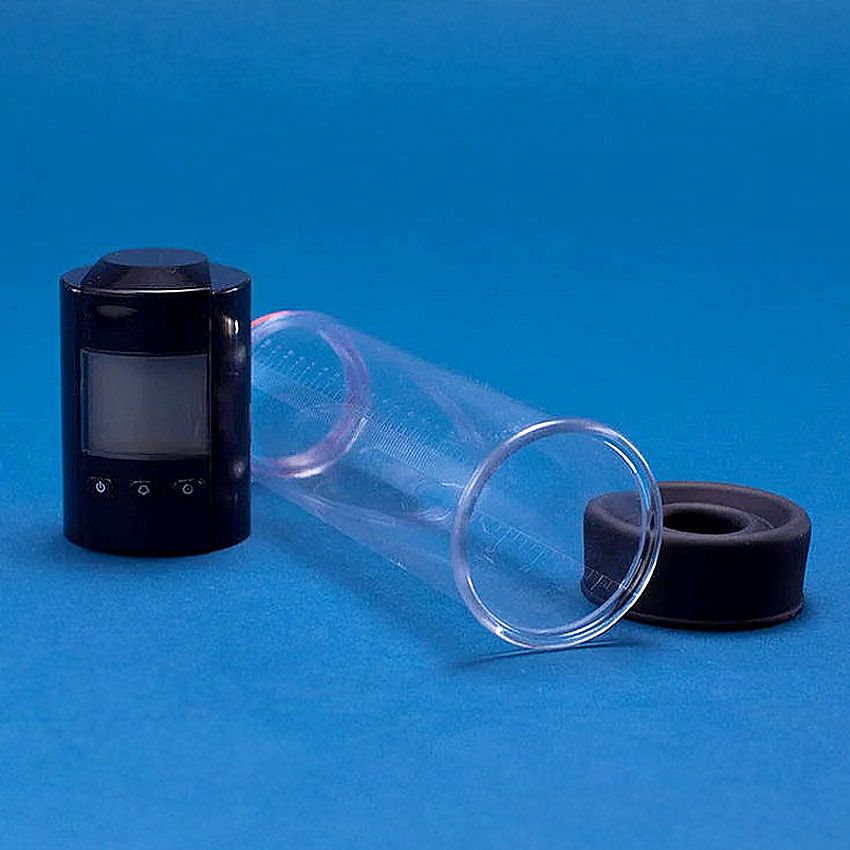 Автоматическая вакуумная помпа разработана для мужчин, желающих увеличить размеры пениса и повысить качество интимной жизни. Во время использования помпа LUVPUMP: - ускоряет кровообращение, обеспечивая прилив крови к половому члену - повышает тонус мышц и эластичность тканей пениса, способствуя увеличению его размеров - дарит великолепную эрекцию - позволяет ощутить потрясающие эротические эмоции - имитирует оральные ласки - придаёт уверенности в себе - расширяет сексуальные возможности. Комплектация изделия: - прочная пластиковая колба с разделительной шкалой, позволяющей отслеживать изменение длины полового члена - контроллер с электронным дисплеем, кнопками управления и разъёмом для зарядного устройства - съёмная эластичная насадка, обеспечивающая плотное прилегание помпы к телу. При необходимости эластичную насадку можно заменить. Например, на мягкую вставку-мастурбатор - USB-провод для зарядки помпы. Управление работой помпы в ручном режиме - Включение/выключение изделия: нажать и 3 секунды удерживать кнопку вкл./выкл. Должен загореться/погаснуть электронный дисплей. - Включение вакуума: краткое нажатие кнопки вкл./выкл. - Фиксация уровня вакуума: краткое нажатие кнопки вкл./выкл. - Сбросить давление до нужного уровня: краткое нажатие кнопки сброса воздуха. - Полностью сбросить давление: нажать и несколько секунд удерживать кнопку сброса воздуха. Управление работой помпы в интеллектуальном режиме Перед переходом в интеллектуальный режим необходимо установить желаемое давление. Для этого нужно выполнить действия, описанные в пункте «Управление работой помпы в ручном режиме». После достижения желаемого давления, 3 секунды удерживать кнопку smart. В нижней средней части экрана должен появится соответствующий значок, указывающий на то, что давление установлено. Если ранее установленное давление нужно отменить, необходимо удерживать кнопку smart ещё 3 секунды. Для перехода в интеллектуальный режим после установки желаемого давления кратко нажать кнопку smart. В левом нижнем углу экрана появится соответствующий значок. Давление начнёт нагнетаться до необходимого уровня. Затем вакуум будет сброшен. Через 20 минут весть процесс повториться. Оставшееся время отобразится в левом верхнем углу экрана. Для изменения времени выдержи при желаемом/максимальном давлении в интеллектуальном режиме нажать кнопку smart. Первоначальное время выдержки равно 0. Каждое нажатие добавляет 1 минуту. Максимальное время выдержки составляет 10 минут. Время выдержи будет отображаться в верхнем левом углу экрана. Для того, чтобы усилить эффект от тренировки во время выдержки насос будет производить прерывистое всасывание. Переключиться в ручной режим можно в любое время, нажав кнопку сброса воздуха. Рабочая длина - 24,5 см. Автоматическая перезаряжаемая вакуумная помпа с прозрачной колбой